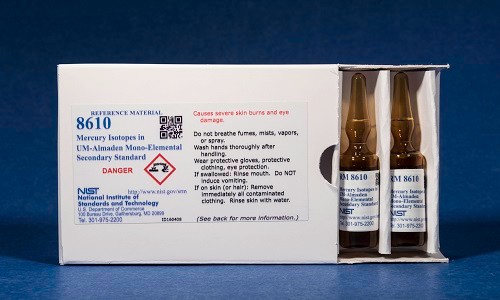 RM 8610 汞同位素旨在用于開發和驗證測量汞 (Hg) 同位素數比 R(XXXHg/198Hg) 相對差異的方法。 一個 RM 8610 單元由四個安瓿組成,每個安瓿包含大約 5 mL 的溶液,該溶液由大約 3 % 質量分數的硝酸和 2 % 質量分數的鹽酸組成